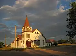 The village, originally 2 miles west of its current site, was founded by ranchers Frank and William Roy, and named for Frank as the first postmaster in 1901.[5] It was relocated after the Dawson Railway was built from Tucumcari through the area in 1902, on its way to coal fields at Dawson. Roy was incorporated in 1916, in what was then Mora County.[6] The railroad was removed after 1950. This led to a significant decline in economic activity in Roy, and the village has been declining for nearly 70 years.[7] The village's historical size can be seen in the more than 40 city blocks that make up Roy.