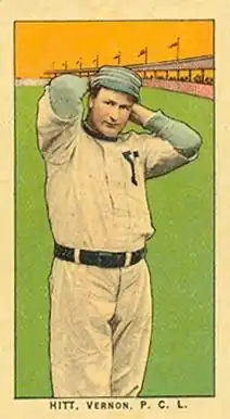 After a short stint in the American Association, Hitt returned to the Pacific Coast League in 1909, with the Vernon Tigers. He immediately became the ace of the Tigers' staff, leading the team in innings pitched and ERA.[5] In 1910, he had one of his best seasons, going 26–17 with a career-low 1.68 ERA in 402.2 innings. Hitt stayed with the Tigers until 1916. He won over 20 games each year for five straight years (1910–1914), and he ended his organized baseball career with 206 minor league wins to go along with his 6 major league ones.[3]