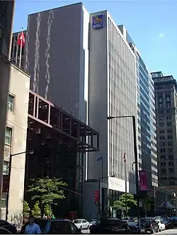 The second building also known as the 12-storey Royal Bank Building, located at 20 King Street West between Yonge and Bay Streets, served as the bank's Toronto offices until the Royal Bank Plaza was completed in 1977. This building was designed by architects Marani, Morris, & Allen.[1] It is still one of several buildings in Toronto's downtown core occupied by the Royal Bank. Construction on the building commenced with the laying of the cornerstone by then Royal Bank of Canada Chairman James Allan in 1964.