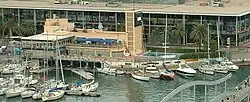 This club is located at one end of Barcelona harbor, close to where la Rambla meets the sea, by the "Maremagnum" shopping mall and aquarium complex. The RCMB is a well-equipped yacht club, with its own delimited area situated very close to its rival Royal Barcelona Yacht Club (Reial Club Nàutic de Barcelona), which is considered more elitist. The RCMB's area is an "administrative concession" from the Barcelona Port Authority. It houses the club's premises, where there is a cafeteria cum restaurant specialized in fish dishes.[1]
