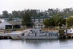 KDB Waspada docked at Muara Naval Base in 1985