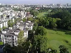 ![]() Aerial view of the Royal Calcutta Golf Club (right) and Kolkata (left) | |