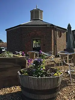 The Pump House in the Cooperage is an octagonal Grade II Listed Building built in 1778 of brick with a pyramidal louvred roof. It was originally designed to house the horse engine which pumped water from the well beneath to the Weevil Brewhouse nearby.[33]