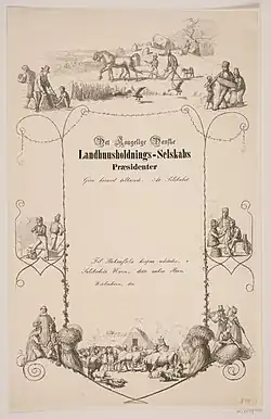 The Royal Danish Agricultural Society was established on 29 January 1769 at the initiative of J. H.E. Bernstorff's protegé Martin Hübner (1723–95).[1]