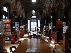 The Society is based at its Library on Nelson Mandela Place, off Buchanan Street in Glasgow's city centre. The maintenance of a library was first proposed in 1736, and one was eventually established in 1817.[2] It moved in 1856 to its present location, a Venetian-style building by Charles Wilson, who also designed 22 Park Circus and Lews Castle on Stornoway.[3][4] It became a Category A listed building in 1966.[3] The Library has grown to become the largest law library in the West of Scotland,[2][4] covering all practice areas. It contains series of law reports, purchases copies of every legal text published and increasingly provides electronic resources to members.[2] It is also available to hire as a venue for meetings and private events.