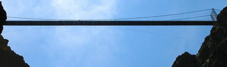 - ^ The main span measurement on the HighestBridges website is 938 ft (286 m), measured with a laser rangefinder.[10] The main span figure of 880 ft (268 m) continues to be listed on both the Royal Gorge Bridge website[4] and the Structurae.net website.[2]