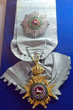 The Royal Guelphic Order (German: Königlicher Guelphen-Orden), sometimes referred to as the Hanoverian Guelphic Order, is a Hanoverian order of chivalry instituted on 28 April 1815 by the Prince Regent (later King George IV).[1] It takes its name from the House of Guelph, of which the House of Hanover was a branch. Since Hanover and the United Kingdom shared a monarch until 1837, the order was frequently bestowed upon British subjects.[2]