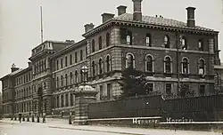 The hospital was built on the authority of Sidney Herbert, responsible for sending Florence Nightingale to the Crimea, leader of War Office reforms after this campaign, and passionate about health care and reducing military mortality rates from diseases and ill-treated war wounds. Designed by chief architect Sir Douglas Galton (of the Royal Engineers), the hospital is notable for the design inputs of Nightingale (Galton's aunt and his cousin by marriage).[1] It opened on 1 November 1865[2] and in the following year Jane Catherine Shaw Stewart, Nightingale's colleague, became responsible for the nurses until she was obliged to stand down after accusations of bullying.[3]