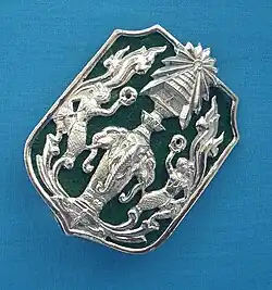 The PRL traced back its origins to the immediate aftermath of World War II, when the Laotian Gendarmerie was established by the French Union authorities in May 1946 under the designation Lao National Guard (French: Garde Nationale Laotiènne – GNL), to replace the local sections of the mainly Vietnamese Indochinese Guard (French: Garde Indochinoise), first established in 1895 as the 'Indigenous Guard' (French: Garde Indigène).[1][2] Although the new GNL was to be exclusively composed by Laotian nationals,[3] it was kept under the close supervision of French gendarmes seconded from the Republican Guard units stationed in Indochina.[4] In 1947, with a strength of 1,000 men, the GNL changed its designation to Laotian Gendarmerie (French: Gendarmerie Laotiènne; Lao: Kong Truat Lao), and despite being officially subordinated to the Laotian Ministry of the Interior and placed that same year under the nominal command of King Sisavang Vong,[5] the gendarmerie remained in fact under French control.[6][3] Disbanded on March 1950 upon the formation of the Laotian National Army (French: Armée Nationale Laotiènne – ANL), it was re-established by official decree on February 13, 1951, as the Royal Lao Gendarmerie or Royal Gendarmerie for short.[7] The new Lao Gendarmerie was charged with safeguarding internal security and public order, with a planned strength of 1,250 officers and enlisted men, though the actual number was lower. By the end of 1955 it had only 540 men,[7] organized into three companies based in Luang Prabang, Vientiane and Paksé, respectively.[8]