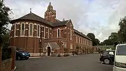In 1899 on what had been the old Drill Field, west of the RM Hospital Barracks, a completely new Hospital was built for the Depot (later referred to as Infirmary Barracks);[7] this enabled the old hospital to be given over entirely to barrack accommodation. The following year, what had been the 'Hospital Barracks' were re-named 'East Barracks', to avoid confusion with the new hospital,[4] with the other areas referred to similarly as North Barracks and South Barracks (the latter now incorporated the old Cavalry Barracks, which served as married men's quarters and Depot offices).[29] In 1905, work was begun on building a new Depot Church (similar in design to those at Eastney and Chatham)[4] on a site alongside the new Drill Field; it was consecrated in January 1907 and dedicated to St Michael and All Angels.[9]