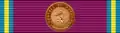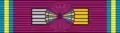 The ribbon of the order is amaranth purple, with narrow pale yellow edge stripes bordered with pale blue, a combination of the ribbons of the Order of Leopold and the Order of the African Star.[2] When awarded in war time, the ribbon of the order may be adorned with a silver or gold palm. The ribbon bar is worn on the semi-formal dress uniform.