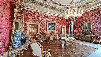 In the year 2000, the Italian State transferred the former private rooms of the palace facing the lagoon to the municipality, which had been used as offices since the 1920s. A restoration sponsored by the French Committee for the Preservation of Venice was then initiated. The nine rooms restored by various sponsors were opened to the public in July 2012 under the name "Empress Elizabeth's Rooms."[28] In 2017, the restoration of three ‘ridotti’ of the Marciana Library was also completed. Originally intended for Viceroy Eugène de Beauharnais, they were redecorated in neoclassical style between 1807 and 1811.[29]