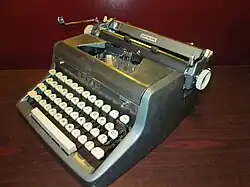 The Royal Quiet Deluxe was a portable typewriter, made by the Royal Typewriter Company, from 1939 until 1959. The first-generation Quiet Deluxe was the first Royal to feature Magic Margin. The first generation of Royal Quiet Deluxe was manufactured from 1939 until 1948, with a gap in production due to World War II. It was the typewriter of choice for Ernest Hemingway.[1]