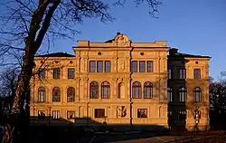 Designed in 1876 as a compact Renaissance palace by Vice City Architect Axel Fredrik Nyström (1832–1894) and inaugurated in 1879, the sumptuous façades of the three stories, to many, were regarded as indecorous on the military setting on the island. The reform of the military academy in 1862 had, however, forced the education of naval officers to be relocated to the eastern part of the city, and Nyström's plans were therefore accepted. The skylight turret was intended to be used as an observatory in the education. The building served as a school until 1943, today being the location for the organisation Nordregio, instigated by the Nordic Council of Ministers in 1997, and advocating issues of interest for northern Europe and the Baltic region.[10]