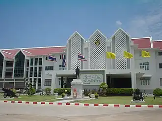 The Royal Thai Naval Academy (Thai: โรงเรียนนายเรือ) (RTNA) was established by King Chulalongkorn (Rama V) in 1898. He officially opened the academy on 20 November 1906.[1] Originally located on the royal yacht Maha Chakri and some other boats donated by the king, the academy later moved to Wang Derm Palace in Thonburi (in the compound of the present headquarters of the Royal Thai Navy), then to Sattahip, and finally to its current location in Samut Prakan in 1952. The academy is served by Royal Thai Naval Academy BTS station.[2]