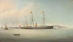 The Canadian portion of the 1901 royal tour began 16 September 1901, when the RMS Ophir arrived in Quebec City.[76] The royal party – which consisted of 22 people, landed at Quebec City on 16 September. During his time in Quebec City, Prince George invested Lieutenant Richard Turner with the Victoria Cross for his conduct during the Battle of Leliefontein in a ceremony at the Plains of Abraham, and spoke to students at the Université Laval.[80] Moving west of Quebec City by railway, the group made stops to Montreal, and Ottawa.[81] Throughout the royal tour, Prince George placed an emphasis on praising the creation and expansion of the country during his own lifetime, giving a speech about the country's development and growth in Ottawa and Winnipeg.[82]