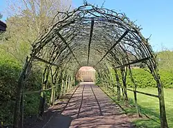 The park has a walled garden which was built in 1870 as the kitchen garden for Hill Bark house and is a fine example of Victorian architecture.[1]: 15 The garden is used as a community resource. A laburnum arch was added by the Wirral Model Engineering Society who operate the miniature railway. Contained within the walls are a herb garden, a bog garden, a flower garden and a traditional cottage garden that originally grew plants for medicinal purposes.