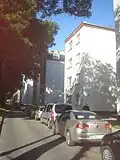 | Residential complex (súbor obytných domov) | mostly Miletičova Street 31-65 (Nivy neighborhood) | The residential complex was built in 1951-1954 according to project by K. Paluš and M. Tengler. It was one of the first residential complexes in Bratislava to include civic amenities on the ground floors of the buildings. The structures are decorated by figural sculptures, decorative friezes, terraces and porticos. It is located in an area bordered by Miletičova Street, Trenčianska Street, Ružová dolina Street and Prievozská Street, the eastern part of the area close to Ružová dolina Street consists of another cultural monument - Swimming pool Delfín and five residential towers (kúpalisko Delfín a päť vežových domov). | |
