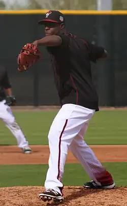In 2016, De La Rosa opened the season in the Diamondbacks' rotation but suffered elbow injuries all year.[9] In September, the team elected to end De La Rosa's season early.[10] He was non-tendered by Arizona on 2 December 2016.[11]