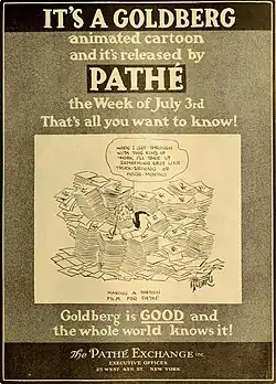 - ^ Photoplay Editor (May 5, 1916). "Pathé Boob Weekly News from Nowhere: Goldberg Does Some Clever Satiric Cartoons on News Pictures". Philadelphia Evening Ledger. p. 10. Retrieved May 21, 2018.
