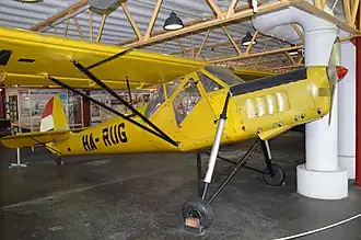 The third and subsequent aircraft, designated R-18c, c/n E-761, registered HA-RUC, had a Walter Minor 6-III six-cylinder engine of 116 kW (155 hp), which extended the fuselage length to 7.7 m (25 ft). The cabin windows and doors were slightly redesigned, and the third seat was replaced by a 120 L (32 US gal; 26 imp gal) fuel tank. Because of problems with the Walter Minor in-line engines, all surviving R-18s were converted to licence-built Shvetsov M-11D five-cylinder radial engines of 93.2 kW (125.0 hp),[1] or M-11FR engines of 119 kW (160 hp)[4] leading to a reduced fuselage length of 7.5 m (25 ft).[5] The conversion work was done by the Central Experimental Plant at Alag, between 1955 and 1958.[6]
