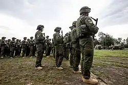 Although the brigade was established on 2 June 2015,[7] actual recruitment of personnel to the brigade started in October 2015.[8] The unit was trained by foreign military advisers and veterans in conformity with NATO standards, including by Canadian soldiers as part of Operation UNIFIER, most recently in summer 2021.[9] According to Ukrainian Interior Minister Arsen Avakov the creation of the brigade should become the first step towards converting the National Guard into a professional army.[5]