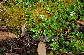 Rubus gunnianus is found in mountainous areas such as alpine moorlands, and subalpine woodlands across Tasmania, including areas such as the Central Coast, Derwent Valley, Hobart, Huon Valley and the West Coast.[7] It is frost hardy, which is essential to alpine environments, due to the harsh weather and exposed conditions at high altitude. It prefers moist, sheltered areas among mosses and leaf litter, where it can survive the harsh conditions of alpine areas, but it can also survive in semi-exposed areas.