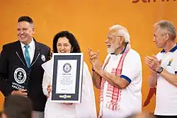 - She highlighted International Yoga Day[45] on 21 June 2023, setting a Guinness World Record[46] for the most nationalities participating in a single yoga session, in the presence of Prime Minister Narendra Modi.