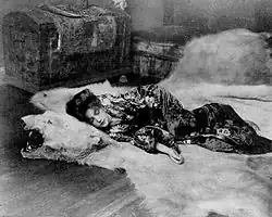 Photographer Roland Rood described Eickemeyer's portraiture photographs of women as "unexcelled, frequently unequaled."[1] His 1901 shoot of New York model Evelyn Nesbit is arguably his best-known portrait work, and included a shot of Nesbit clad in a kimono and curled up on a bear-skin rug.[1] Other well-known women photographed by Eickemeyer include opera singer Mary Garden and actress Lillian Russell.