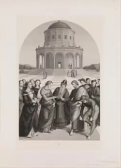 From 1865 to 1874, he made several trips to Italy. The academies in Berlin, Munich, and Brussels named him a member, for his engraving, "The Marriage of the Virgin", after a work by Raphael, which he made following a visit to Milan in 1873. The following year, he did an engraving of "The Last Supper", by Leonardo da Vinci.