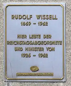 As a politician engaged in social policy, Wissell was a member of the executive committee of the ADG from 1919 to 1924. From 1924 to 1932, he was also an arbitrator in pay negotiations in Berlin and Brandenburg. In 1929, he received an honorary doctorate from the University of Kiel due to his public service.[1]