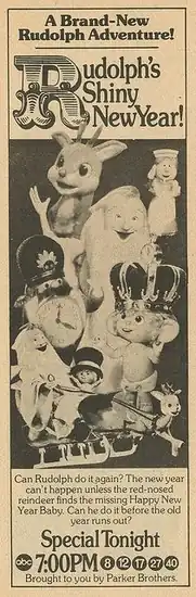 Rudolph's Shiny New Year is a 1976 Christmas and New Year's stop motion animated television special and a standalone sequel to the 1964 special Rudolph the Red-Nosed Reindeer produced by Rankin/Bass Productions. The special premiered on ABC on December 10, 1976.[1]