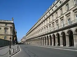 Rue de Rivoli between the north wing of the Louvre Palace (left) and the Louvre Saint-Honoré building (right)