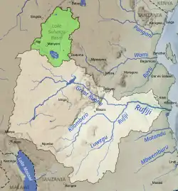 ![]() Map of the Rufiji River drainage basin. The separate, endorheic Lake Sulunga basin is shown in green. | |