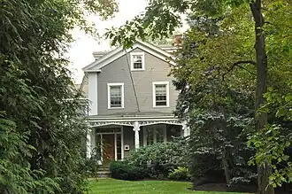 It is a 2+1⁄2-story wood-frame structure, two bays in width, with a front-facing gable roof and a porch extending across the front supported by Ionic columns. The entrance is flanked by sidelight windows and wide pilasters. The house was built c. 1848, and is one of the earliest houses built when Auburndale was subdivided for development. It is a well preserved Greek Revival side-hall plan house.[2]