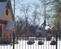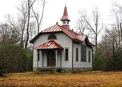 The Christ Church Episcopal was established on October 5, 1880, and initially used the original Rugby schoolhouse for services. The current building was built in the Carpenter Gothic style in 1887 by Cornelius Onderdonk, who constructed many of the original buildings in Rugby, and consecrated by Episcopal bishop Charles Quintard in 1888.[9] The church's alms basin was designed by English carpenter Henry Fry, who had previously done work for various churches in the London area. The church's reed organ, built in 1849, is one of the oldest in the United States.[10] The Christ Church parish has met here regularly since 1887.