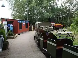 The RNUDC became part of the London Borough of Hillingdon in 1965.[3] Subsequent neglect of the lido as well as its entrance fees reduced visitor numbers. By the mid-1970s the Hunt locomotive was becoming unreliable and new locomotives were purchased from the manufacturer Severn Lamb in 1973 and 1975. An accident in 1978, which injured several people in a derailment due to speeding, resulted in closure of the railway, which soon began to display signs of dereliction.[2]