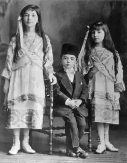 ![]() Rukiye Sultan (right) with her brother Şehzade Mehmed Nazim and her sister Dürriye Sultan | |