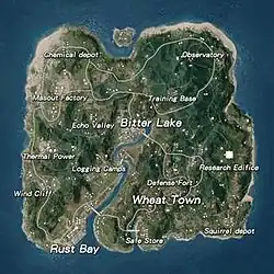 The round starts with all players contained in one location on an island. When the countdown finishes, players will parachute from a plane onto an island, with procedurally distributed items such as weapons, armors and medical kits available to be looted, and vehicles to be ridden. Players can also loot killed players for their gear. In third-person mode, players can switch between third-person and first-person perspective. The game also offers first-person mode which forces players into first-person perspective. As the game time progresses, the game's safe zone will gradually reduce in size, where players caught outside the zone will take damage. This increases the chance of encounter, and thus confrontation between players. Random supply drops will also occur during match, providing random items which may otherwise not be able to be found during normal gameplay.