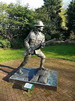 There is a memorial garden opposite the memorial cross. It has a statue of Thomas Alfred Jones, from Runcorn, who was awarded a Victoria Cross.