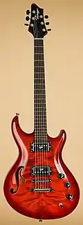 First introduced in 1997 – a carved top double-cutaway electric guitar with set-neck construction. Both solid body and semi-acoustic versions exist. Includes a number of unique design points. Current model versions are: Sonic (replaced the earlier Sonic and TwinSonic), Classic (replaced the earlier Classic, Standard and DeLuxe), Artisan (replaced the earlier Special) and Royale.