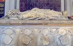 Ruprecht persisted in trying to reduce the privileges of cities within the archbishopric. With military and financial assistance from his brother Frederick I, Elector Palatine,[8] he began the Cologne Ecclesiastical Conflict (German: Kölner Stiftsfehde), which grew into the Burgundian Wars. The majority of Ruprecht's vassals, including the citizens of Cologne, renounced their allegiance to him and asked both the Pope and Emperor Frederick III to intervene. In open rebellion, they proclaimed Landgrave Hermann of Hesse administrator and protector of the archbishopric.[6] Only a few minor lords remained loyal to Ruprecht.[4] Ruprecht appealed for help to Charles the Bold, Duke of Burgundy, who announced himself the protector of Cologne.[9][10] The Emperor attempted in December 1473 to mediate the conflict, but failed. In 1474, Charles besieged Neuss, a stronghold of the rebels in which Hermann had taken refuge; the Reichstag decided at Augsburg to go to war against Charles,[2] and a general call to arms was issued in the German Empire.[11] The Siege of Neuss lasted almost a year and ended in Charles accepting the Pope's mediation, including concerning Ruprecht's position as archbishop.[12] Ruprecht had been excommunicated by the Pope in 1472 for not paying required contributions from his see to Rome.[4] His position continued to weaken; his brother did not support him against the Emperor[13] and died on 12 December 1476,[4] and he lost the support of all but Kempen and Altenahr and in March 1478 was taken captive by the Hessians. Imprisoned in Burg Blankenstein near Gladenbach and with the Duke of Jülich-Berg acting as mediator, he was forced to renounce his position as archbishop in exchange for an income of 4,000 gold guilders.[2] He died before the Pope granted acceptance of his resignation,[14] and was buried in the Bonn Minster. His successor as Archbishop of Cologne was Hermann of Hesse, who had successfully defended Neuss against him and his allies and became Hermann IV; he gave Ruprecht an imposing tomb.[2]