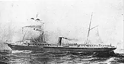 The Amazonas was a transport that had belonged to the Pacific Steam Navigation Company and had been purchased during the war. In service since 1859, she has an iron hull, where she displaced 2,019 t. She was armed with a 6-inch Armstrong gun, being capable of a maximum speed of 13 kn.