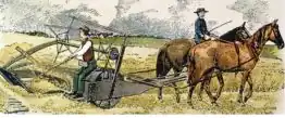 1894 being compared with 1830, the required human labor declined from three hours and three minutes to ten minutes. The heavy, clumsy plow of 1830 had given way to the disk plow that both plowed and pulverized the soil in the same operation; hand sowing had been displaced by the mechanical seeder drawn by horses; the cradling and thrashing with flails and hand winnowing had given way to reaping, thrashing, and sacking with the combined reaper and thrasher drawn by horses.[14]