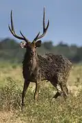 | Rusa unicolor | Sambar, Indian sambar-deer, Malayan sambar | Most of the temperate, subtropical & tropical Indian subcontinent south of the Himalayas (incl. Bangladesh, Nepal, Sri Lanka), mainland Southeast Asia (incl. Cambodia, Laos, Malaysian mainland, Myanmar, edges of Singapore, Thailand, Vietnam), Brunei, Indonesia (Borneo, Sumatra), southern China (including Hainan Island) and Taiwan. |