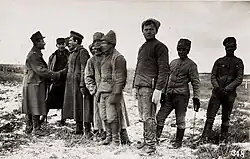 The turnover of troops was as rapid as that of cadres: practically every unit changed its composition ten or twelve times during the war, preventing the formation of corps solidarity. General Anton Denikin spoke of "a constant stream of men".[39] The mobilized peasants complained that their leaders lived a luxurious life away from the troops, and treated their soldiers like serfs. One of them writes that, in his unit, officers "whipped five men in front of 28,000 soldiers because they had left their barracks without permission to go and buy bread".[44]
