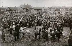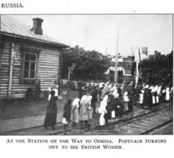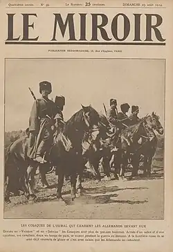 The initial enthusiasm of the authorities was scarcely shared by the people: several foreign observers noted that there were no crowds or bands at the stations to cheer the troops and that the peasant recruits set off with a resigned air.[32] From the very first weeks of the war, some soldiers made no secret of their bad mood: "Who the hell brought this war on us? We're interfering in other people's business", "We're from Tambov, the Germans won't go that far", "Let them go and fight themselves. Just a little longer, and we'll settle the score with you." Most had only the vaguest idea of the causes of the war and didn't know what Serbia was, or even Germany.[33]