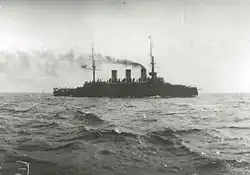Oslyabya (Russian: Ослябя) was the second of the three Peresvet-class second-class pre-dreadnought battleships built for the Imperial Russian Navy at the end of the nineteenth century, although construction delays meant that she was the last to be completed. The ship was part of the Second Pacific Squadron sent to the Far East during the Russo-Japanese War of 1904–05, and served as the flagship of Rear Admiral Baron Dmitry von Fölkersam. Oslyabya was sunk on 27 May 1905 at the Battle of Tsushima, and was the first all-steel battleship to be sunk by naval gunfire alone. Sources differ on the exact number of casualties, but over half her crew went down with the ship.