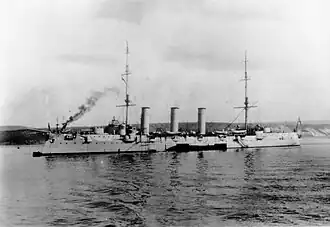 Pamiat' Merkuria was originally named Kagul and did not receive her name until 25 March 1907. This has caused much confusion between her and her sister Ochakov regarding construction data. Some of the data presented here is taken from Russian-language sources.[3][4]
