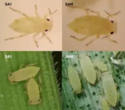 - ^ a b Venter, Eduard; Mansoor, Chara V.; Sibisi, Phumzile; Botha, Anna-Maria (2014). "Potassium phosphate induces tolerance against the Russian wheat aphid (Diuraphis noxia, Homoptera: Aphididae) in wheat". Crop Protection. 61: 43–50. Bibcode:2014CrPro..61...43V. doi:10.1016/j.cropro.2014.03.015.